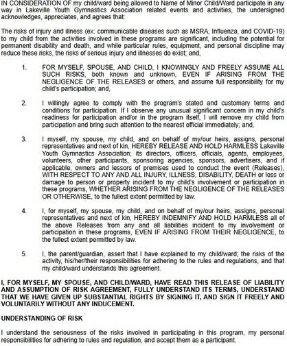 I have read and accepted the terms of the Injury Release located to the right.